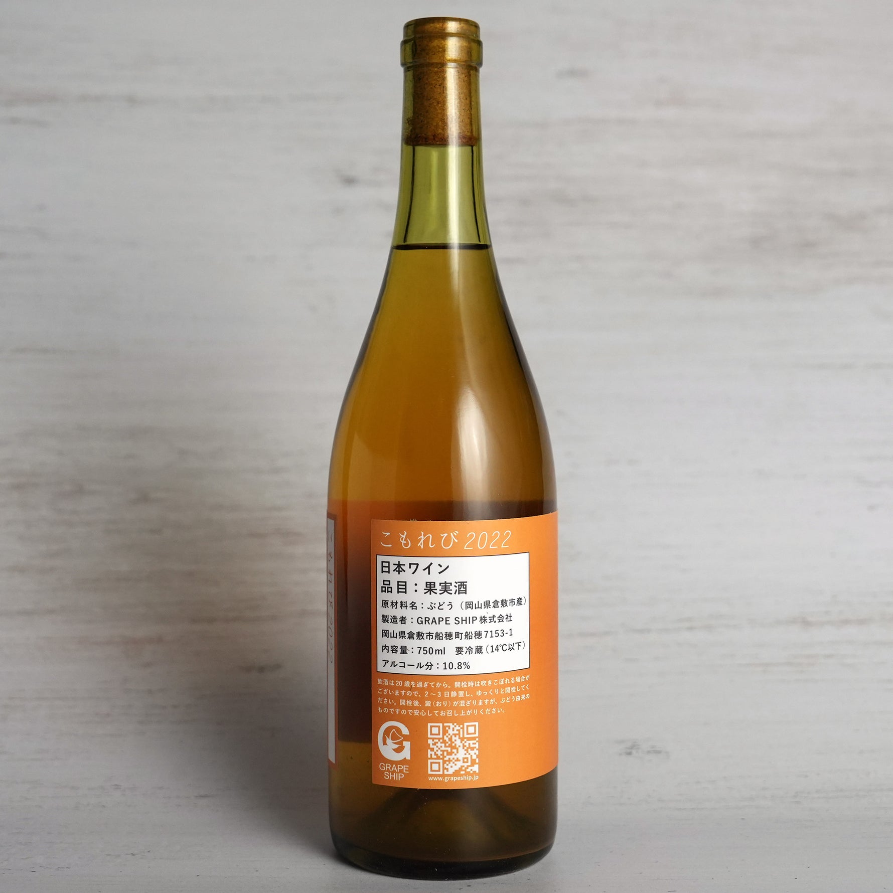 ぶどうの産地、倉敷市船穂町で有機農法で育てたマスカット・オブ・アレキサンドリアだけを使用。果実を丸ごとバスケットプレスにて搾汁。小樽で発酵させ2年間樽熟成し、2024年に瓶詰め。清澄剤不使用、亜硫酸無添加。